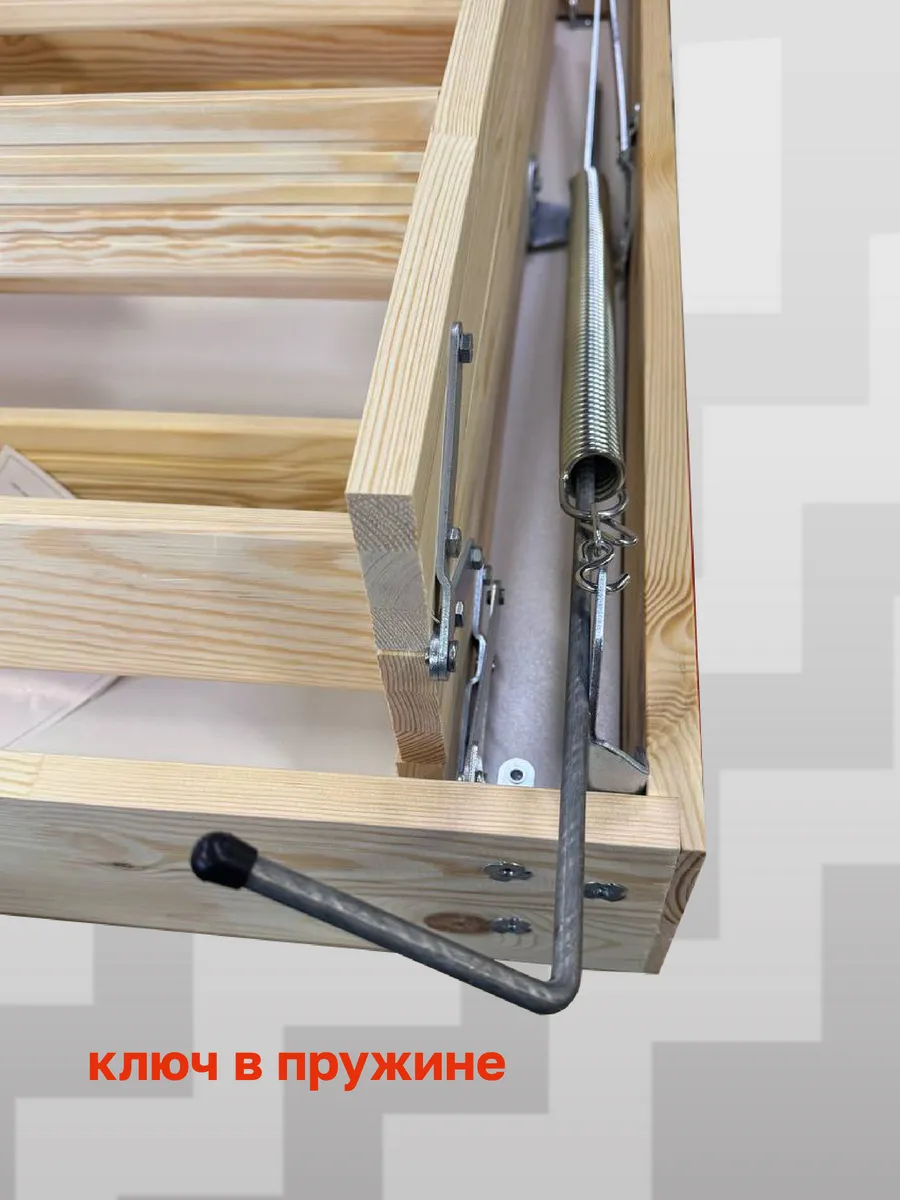 Простая и прочная система легко устанавливается в проем перекрытия, гарантируя безопасный подъем на чердак. Удобный механизм раскладывания — всего два движения для полного спуска секций.