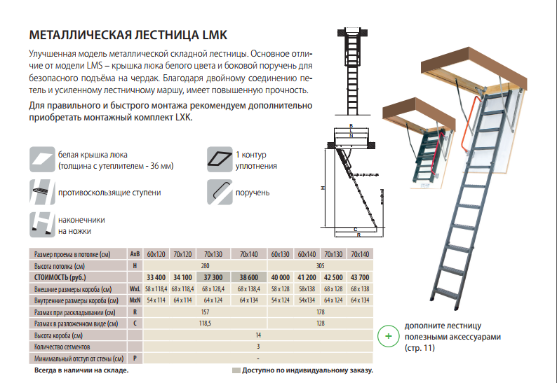 Ниже приведена таблица всех моделей LMK для подбора чердачной лестницы