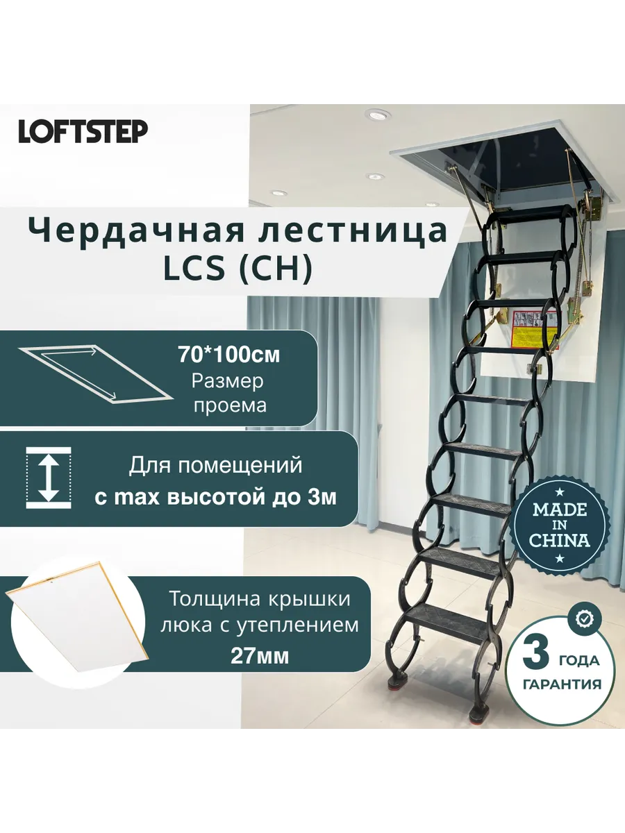 Чердачная лестница ножничного типа LCS CH 70x100x300 LOFTSTEP – ваш быстрый и комфортный путь на чердак! Оформите заказ и пользуйтесь прочной, безопасной и компактной лестницей с доставкой по Беларуси.