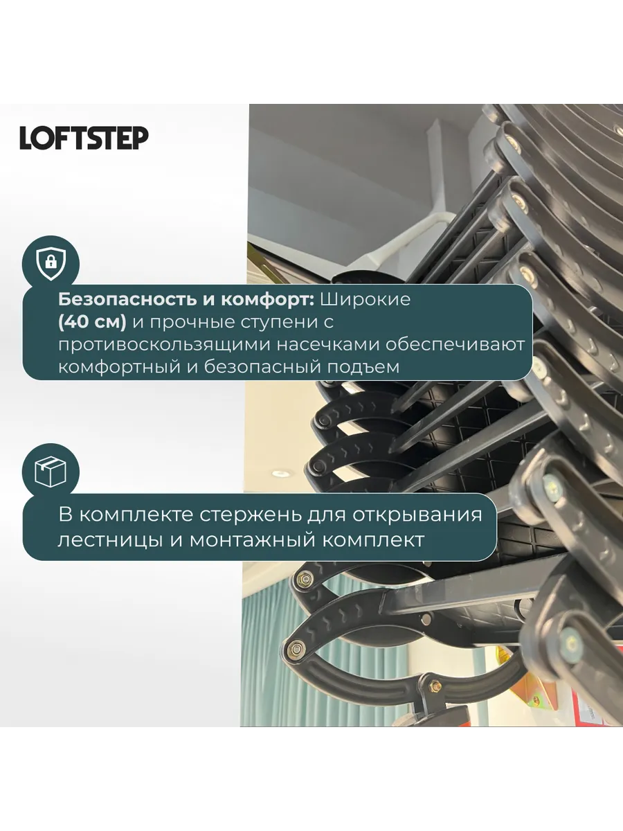 Простая установка: В комплект входят стержень для открывания лестницы и монтажный набор; лестница подходит для высоты потолка до 300 см.
