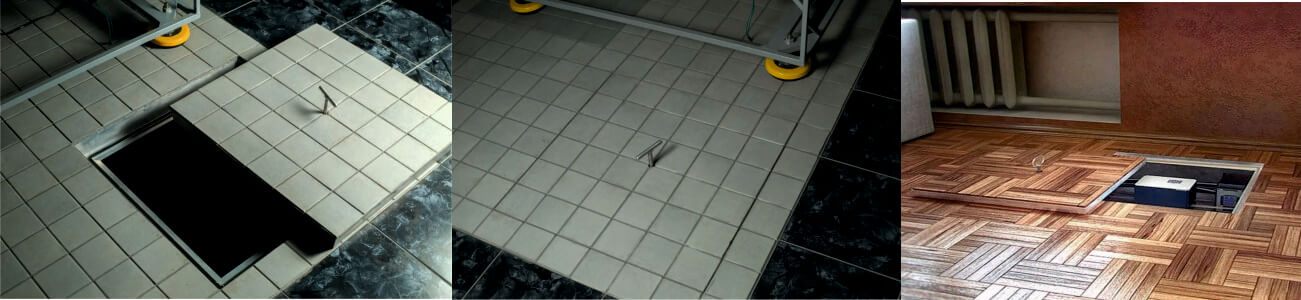 - Удобство монтажа. Установить съемный люк в пол проще, чем распашной — минимум фурнитуры.