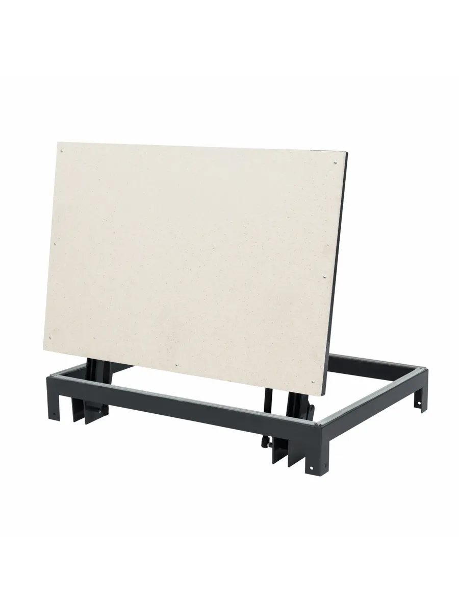 Идеальный напольный люк для подвала, террасы или гаража! Уникальная система ножничного типа с параллельным подъемом крышки вверх, затем на 90° – позволяет отделать поверхность толстым материалом: террасная доска, инженерная доска, мрамор, гранит и прочее (до 50 мм).