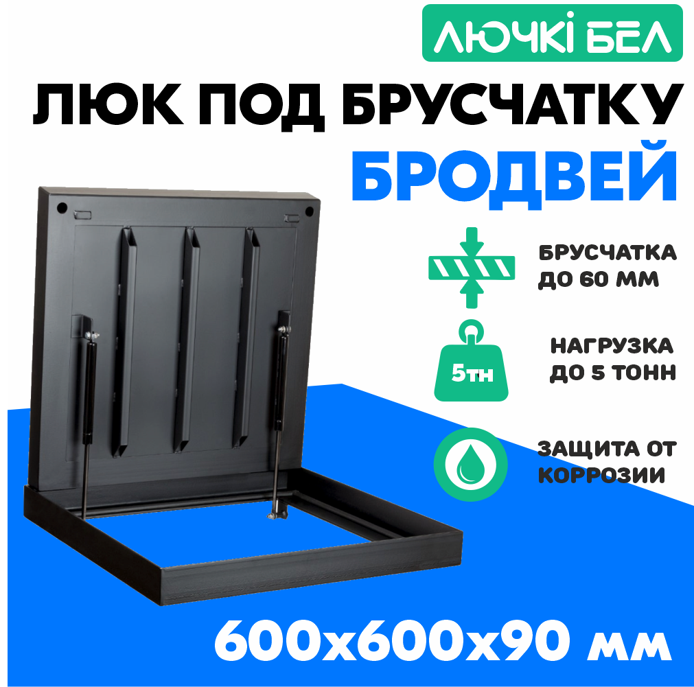 Люк тротуарный под брусчатку с амортизаторами Бродвей 600х600х90 нагрузка до 5т