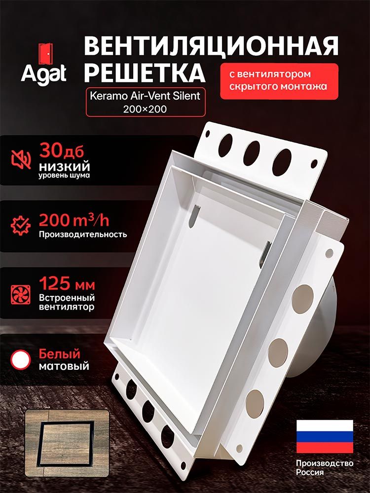 Решетка + вентилятор Keramo Air-Vent Silent 200х200 D125 (белая)