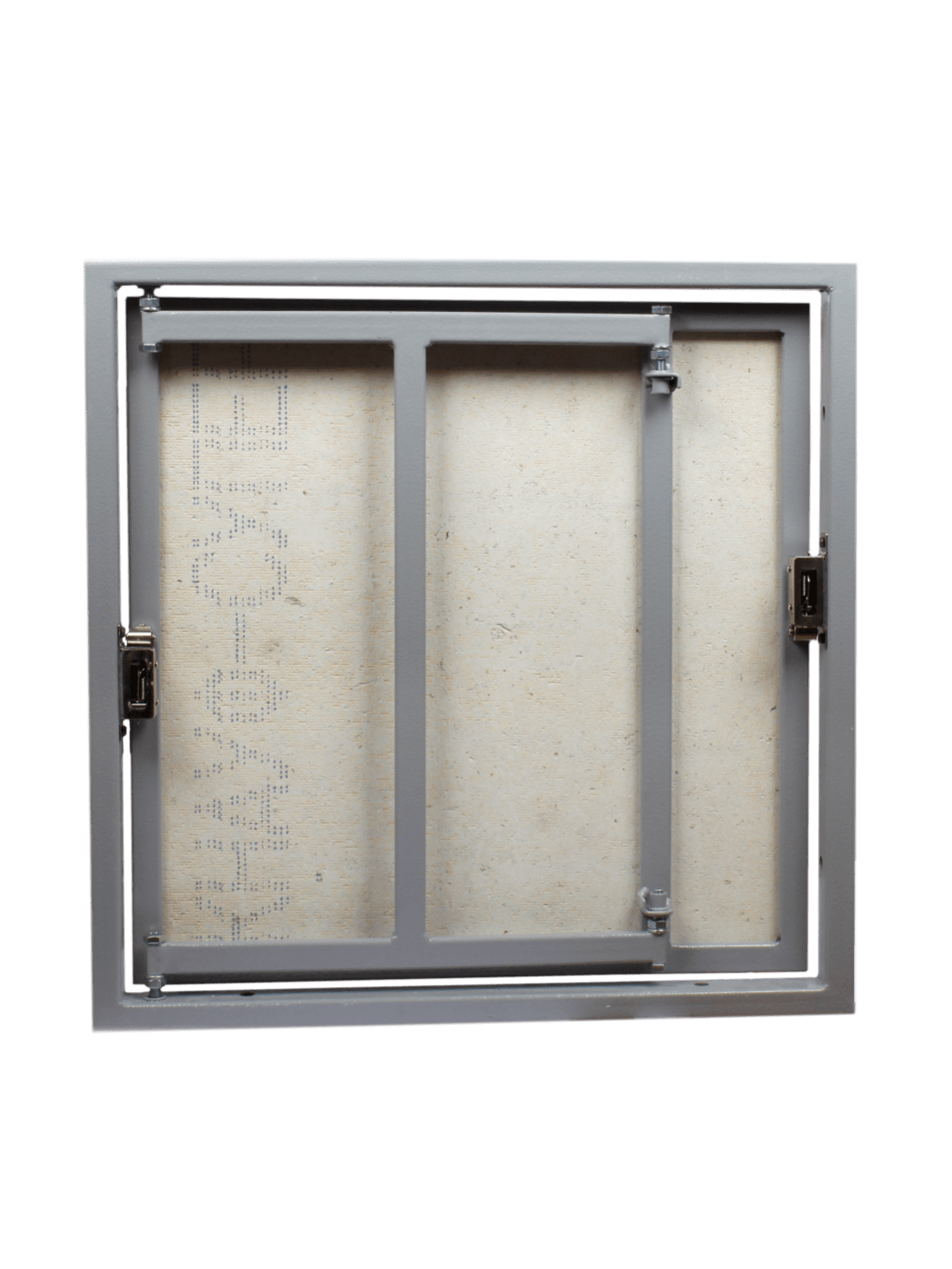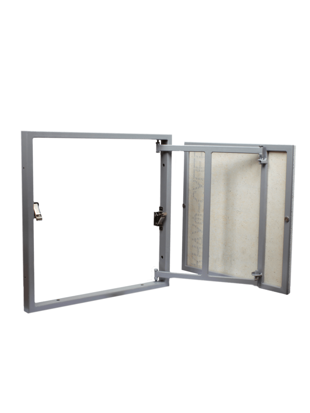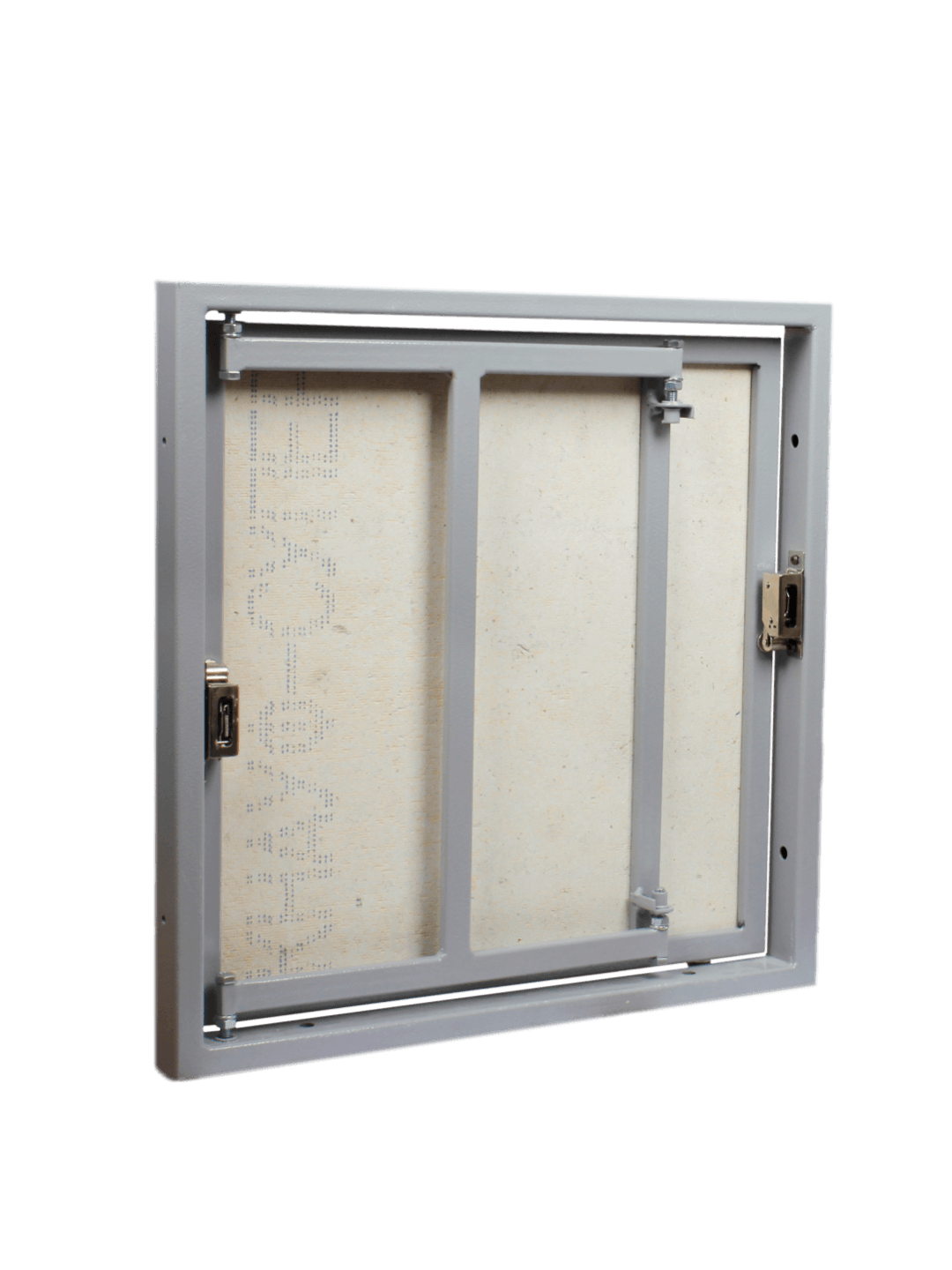 Материал изделия: рама и дверца - стальной профиль, дверца - плита ГВЛ (гипсоволоконный влагостойкий лист), петля - стальная однозвенная.