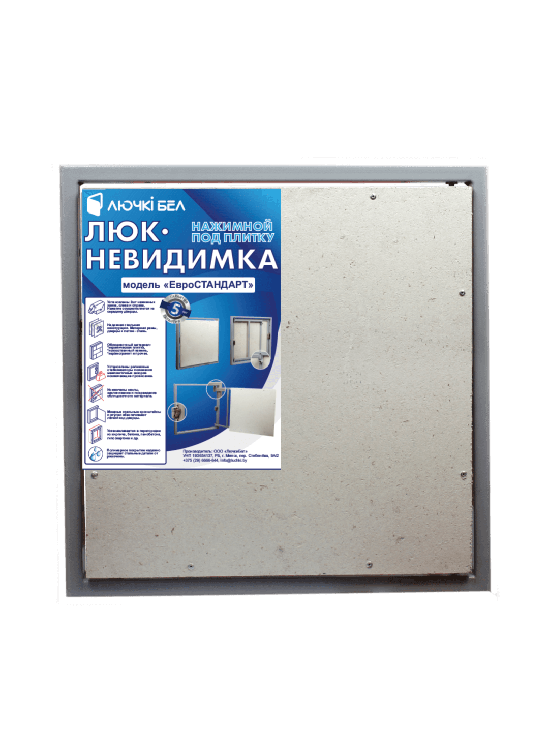 Ревизионный люк под плитку ЛючкиБел Евростандарт 25х25 (250х250 мм)