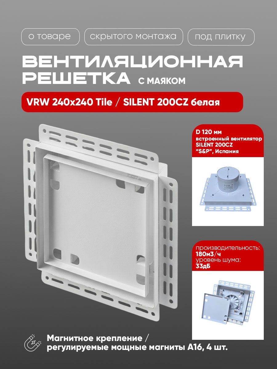 Вентиляционная решетка VRW 240x240 Tile / SILENT 200CZ (белая)