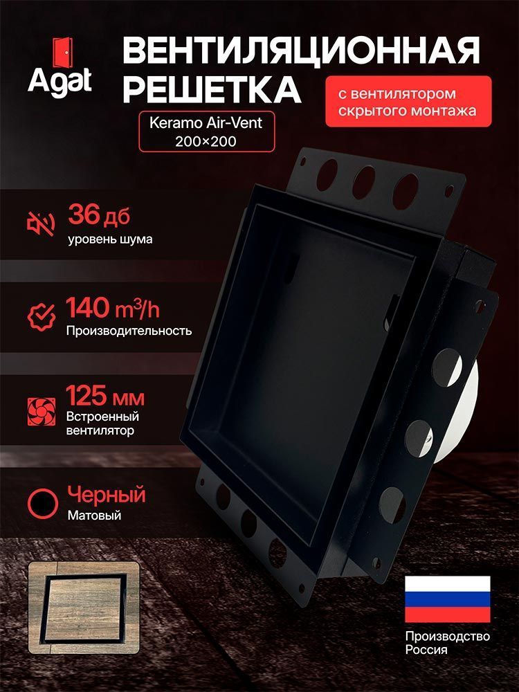 Решетка + вентилятор Keramo Air-Vent 200х200 D125 (черная)