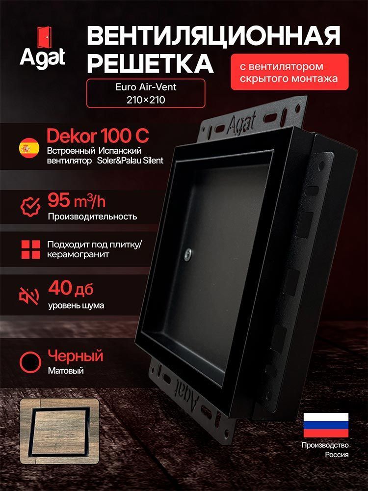 Решетка + вентилятор Euro Air-Vent 210х210 D100 (черная)