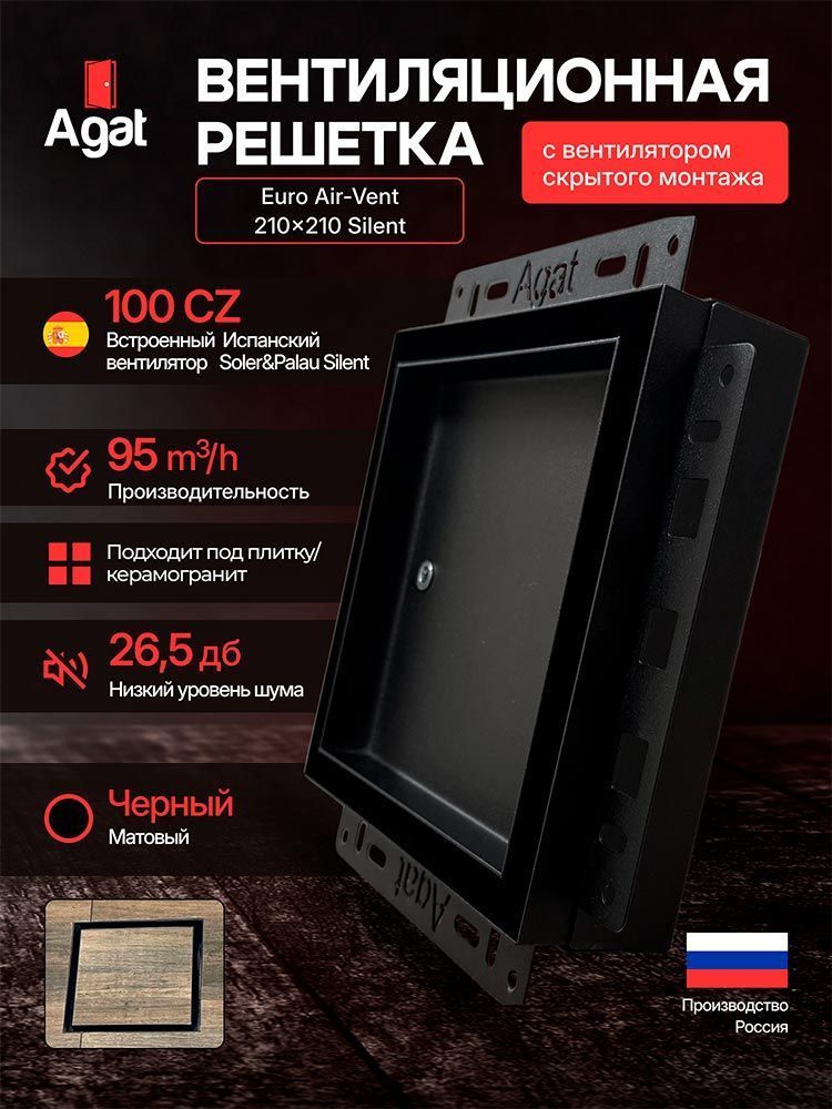 Решетка + вентилятор Euro Air-Vent Silent 210х210 D100 (черная)