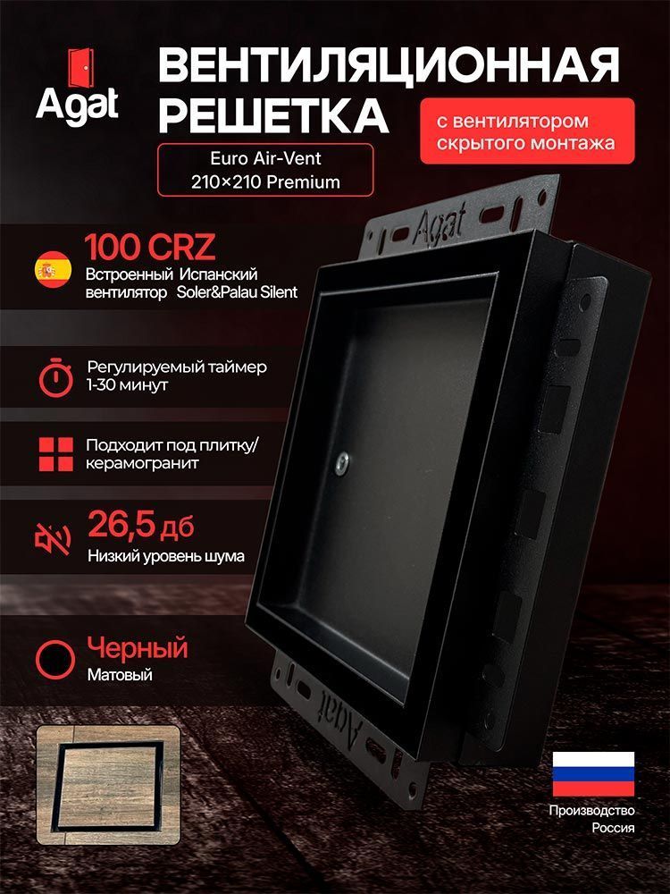 Решетка + вентилятор Euro Air-Vent Premium 210х210 D100 (черная)