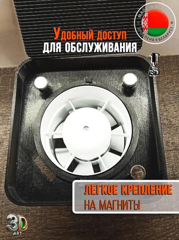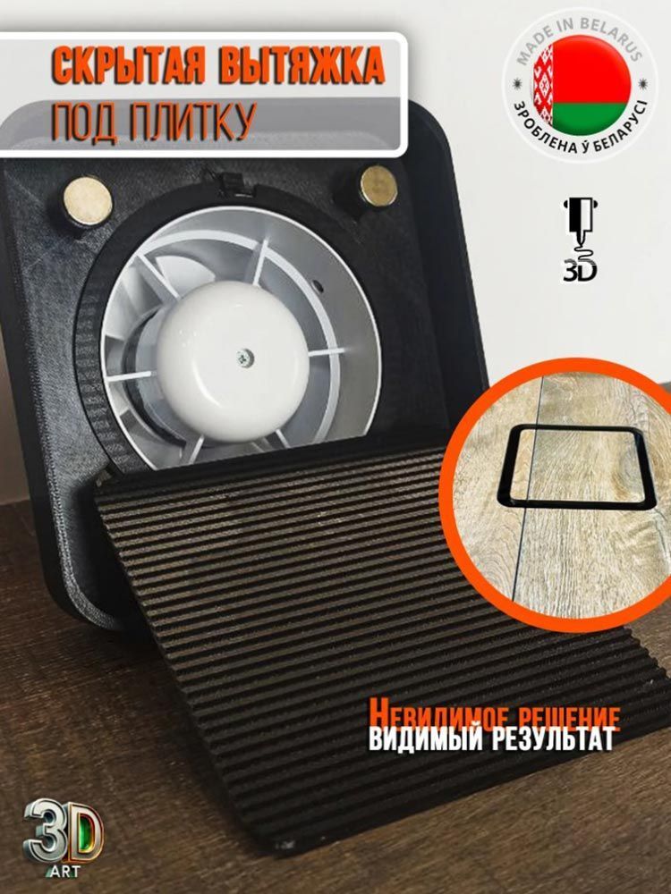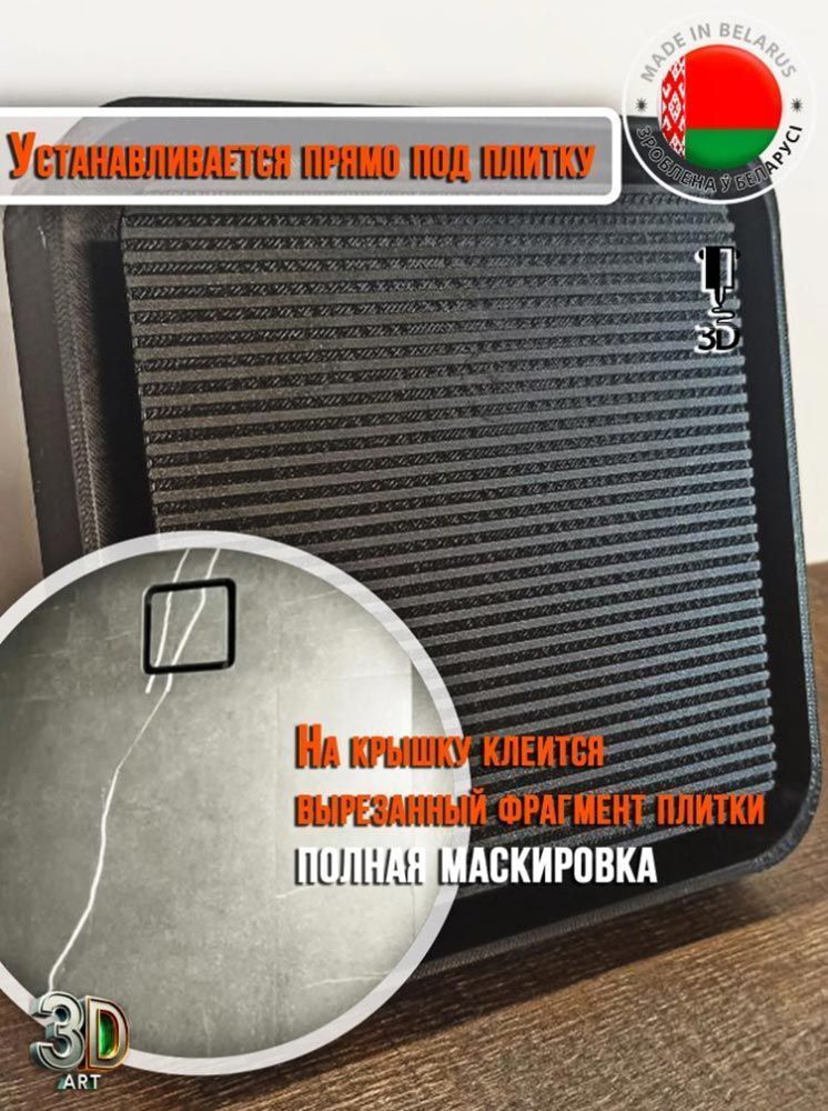 Вентрешетка 3D-art 160x160 скруглённые углы (черная, под плитку)